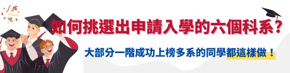 學測結束後,大部分的考生都在等2/25成績公布,成績公布後的重頭戲就是挑選出在申請入學中要選填的6個校系(若為一般高中者,可再選填6個科大),但在眾多的校系中如何選擇適合自己及機率較高的六個系呢? |