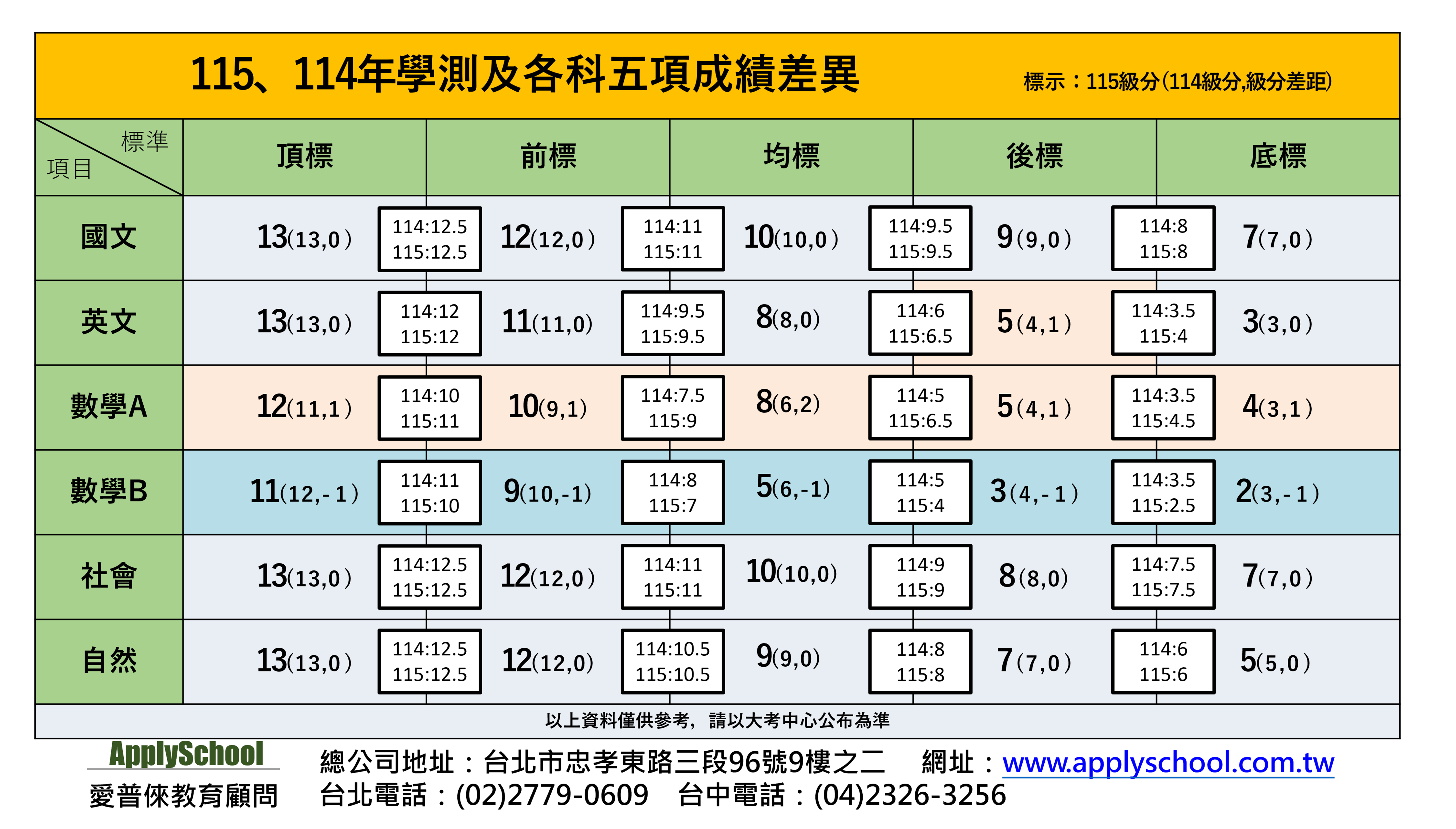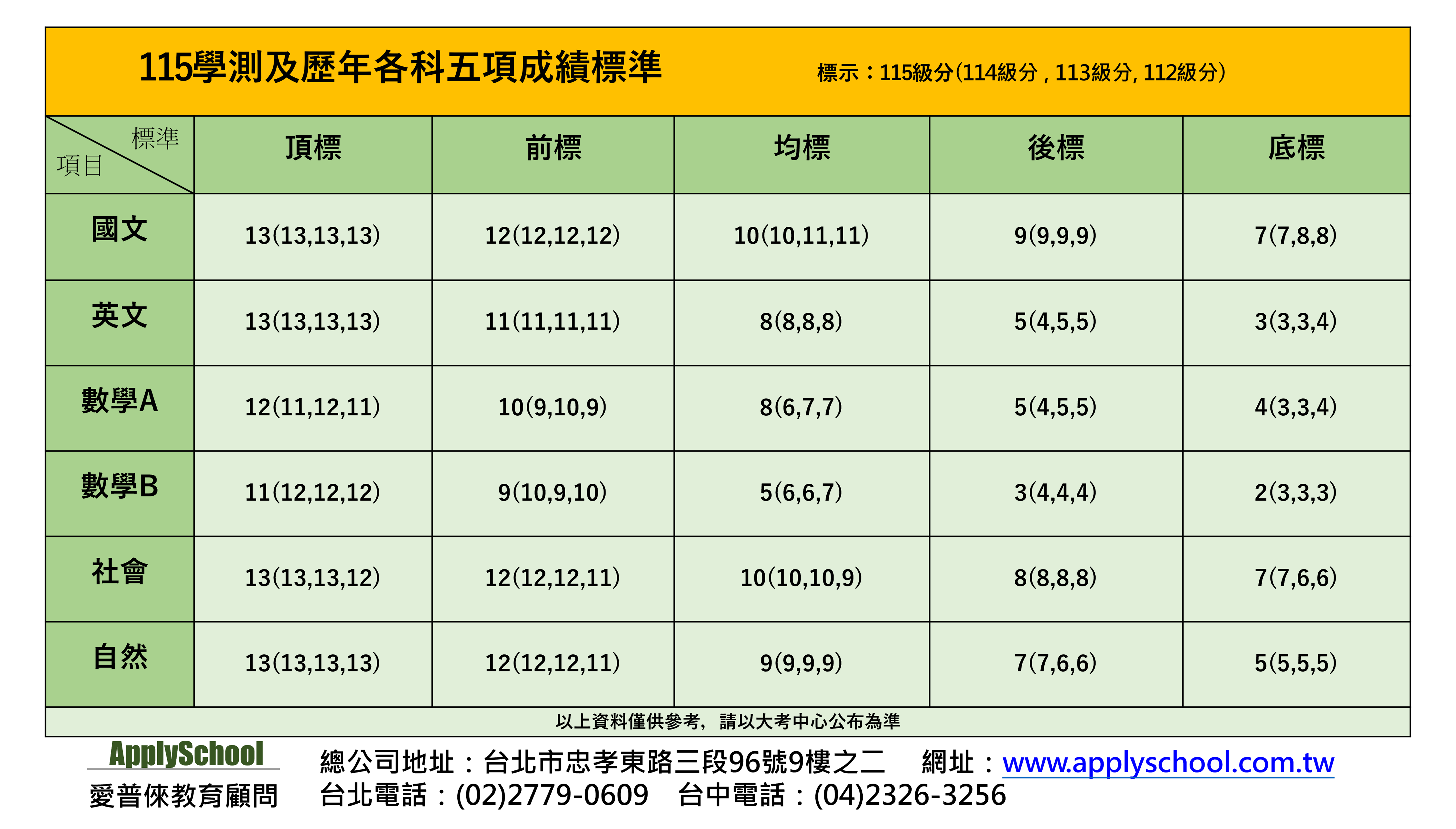 111學年度起,數學分為數A及數B,幾乎無任何可靠性的歷史資料,而114學年申請入學因制度改變,可參考之資料僅111到114學年,所以期待落點分析系統能精準是相當不容易的。 |